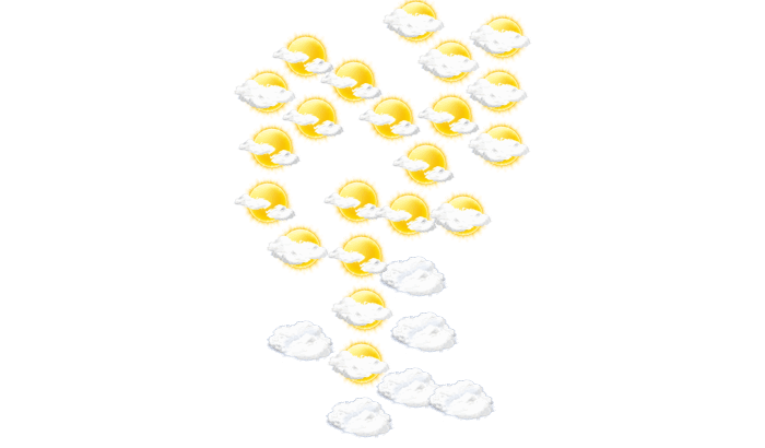 In Bohicon bleibt am Morgen die Wolkendecke geschlossen bei Werten von 25°C. Im weiteren Tagesverlauf gibt es überwiegend blauen Himmel mit vereinzelten Wolken bei Höchsttemperaturen bis zu 35°C. Am Abend gibt es in Bohicon Regen und die Werte gehen auf 24 bis 27°C zurück. Nachts überwiegt dichte Bewölkung, aber es bleibt trocken bei Werten von 25°C.