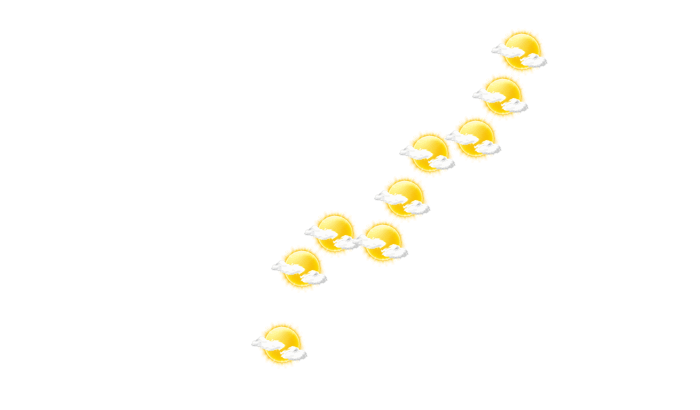 In Chelston wird am Tag die Sonne von einzelnen Wolken verdeckt und die Temperaturen liegen zwischen 22 und 25°C. Nachts bilden sich leichte Wolken bei Tiefstwerten von 23°C.