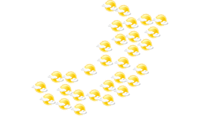 In Dagapela ist es morgens teils wolkig und teils heiter bei Werten von 9°C. Am Mittag gibt es mehr Wolken als Sonne bei Höchstwerten von 20°C. Am Abend ist es in Dagapela wolkenlos und die Temperatur liegt bei 9°C. Nachts ist es wolkenlos bei Werten von 9°C.