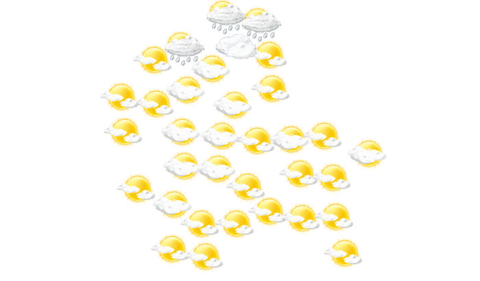 In Cotoca ist es am Morgen leicht bewölkt bei Werten von 22°C. Im weiteren Tagesverlauf scheint vom Nachmittag bis abends die Sonne und die Temperaturen liegen zwischen 24 und 35 Grad. Nachts bilden sich leichte Wolken und die Temperatur sinkt auf 21°C.