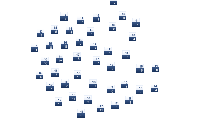 | 25 | 22 | 21 | 21 | 19 | 17 | 16 | 18 | 20 | 21 | 21 | 21 |