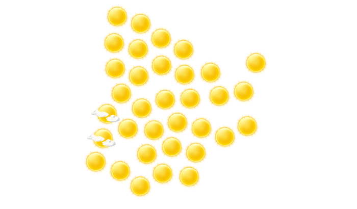 In Mmathubudukwane scheint am Morgen die Sonne bei blauem Himmel bei Werten von 20°C. Im weiteren Tagesverlauf gibt es lockere Bewölkung und die Höchstwerte liegen bei 34°C. Am Abend gibt es in Mmathubudukwane keine Wolken und die Temperaturen liegen zwischen 26 und 28 Grad. Nachts ist es überwiegend dicht bewölkt bei einer Temperatur von 20°C.