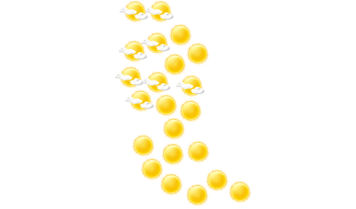 In Sebina ist es von morgens bis zum Nachmittag locker bewölkt bei Werten von 19 bis zu 33°C. Am Abend gibt es in Sebina keine Wolken und die Temperaturen liegen zwischen 24 und 28 Grad. Nachts ist es wolkenlos und die Temperatur fällt auf 18°C.