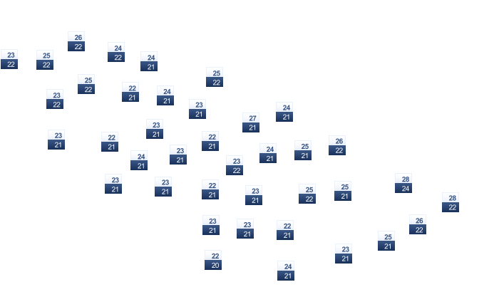 | 23 | 24 | 24 | 23 | 22 | 22 | 21 | 21 | 22 | 22 | 23 | 23 |