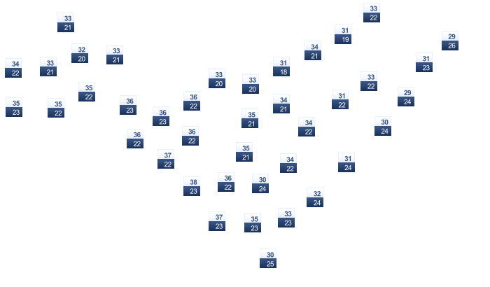 | 30 | 30 | 30 | 29 | 28 | 27 | 27 | 27 | 27 | 28 | 29 | 29 |