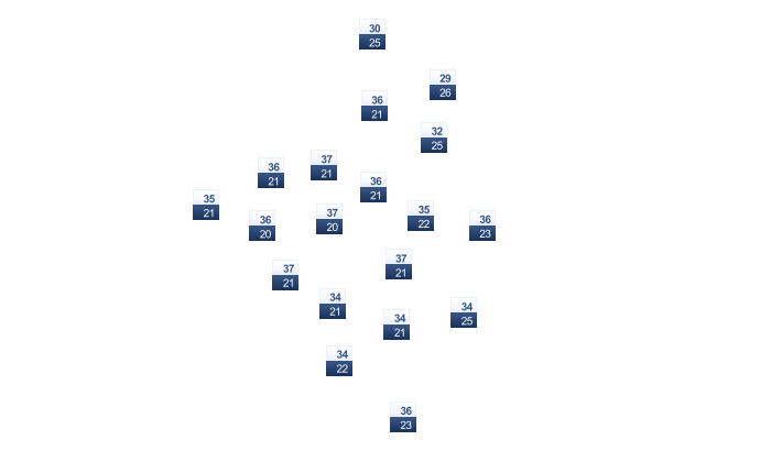 | 30 | 30 | 30 | 29 | 28 | 27 | 27 | 27 | 27 | 28 | 29 | 29 |