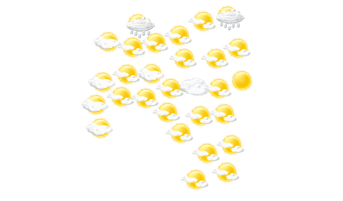 In Santa Cruz Cabrália zeigt sich am Morgen die Sonne zwischen einzelnen Wolken bei Werten von 24°C. Darüber hinaus ist es vom Nachmittag bis abends überwiegend dicht bewölkt bei Werten von 26 bis zu 30°C. In der Nacht ist es wolkig bei einer Temperatur von 25°C.