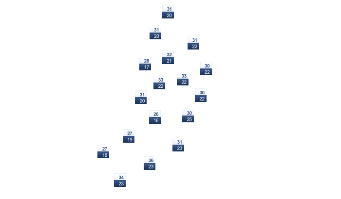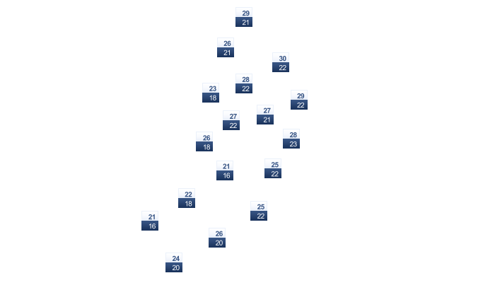 | 30 | 30 | 30 | 29 | 28 | 27 | 27 | 27 | 27 | 28 | 29 | 29 |