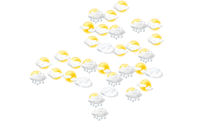In Poços de Caldas bleibt morgens die Wolkendecke geschlossen bei Werten von 18°C. Im weiteren Verlauf des Tages fällt mittags und auch abends Regen und die Temperaturen liegen zwischen 18 und 23 Grad. In der Nacht ist es bedeckt und die Luft kühlt sich auf 17°C ab.