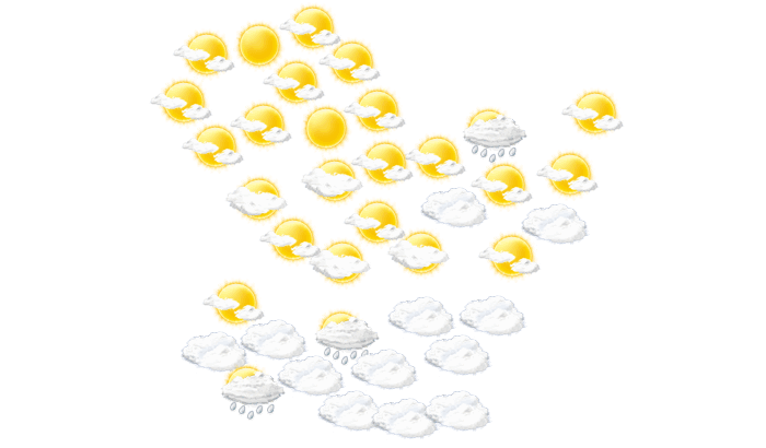 In Belém wird morgens die Sonne von einzelnen Wolken verdeckt bei Werten von 25°C. Im weiteren Tagesverlauf sollte der Schirm nicht vergessen werden, da es regnet und die Temperatur steigt auf 31°C. Am Abend ist es in Belém locker bewölkt und die Temperaturen liegen zwischen 26 und 28 Grad. Nachts bilden sich vereinzelt Wolken bei Tiefstwerten von 25°C.
