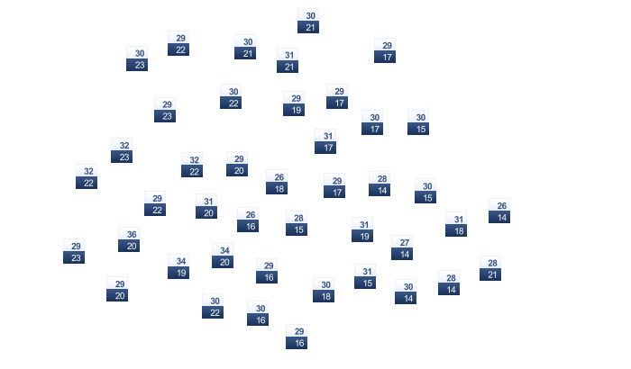 | 30 | 30 | 30 | 29 | 28 | 27 | 27 | 27 | 27 | 28 | 29 | 29 |