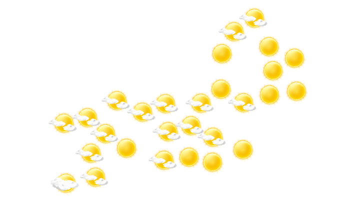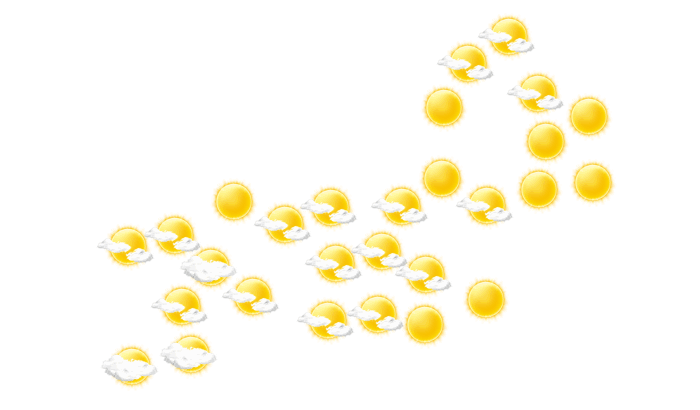 In Rio de Janeiro strahlt morgens die Sonne bei Temperaturen von 26°C. Im weiteren Verlauf des Tages bilden sich mittags und auch abends leichte Wolken bei Werten von 27 bis zu 31°C. Nachts gibt es lockere Bewölkung bei Tiefsttemperaturen von 26°C.