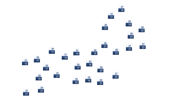 | 30 | 30 | 30 | 29 | 28 | 27 | 27 | 27 | 27 | 28 | 29 | 29 |