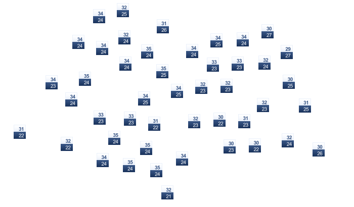 | 30 | 30 | 30 | 29 | 28 | 27 | 27 | 27 | 27 | 28 | 29 | 29 |