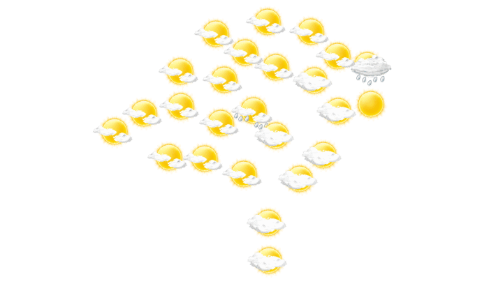 In Santa Maria ist es morgens bewölkt, die Sonne zeigt sich nur vereinzelt bei Temperaturen von 20°C. Im weiteren Verlauf des Tages fällt am Nachmittag und am Abend vereinzelt etwas Regen und die Temperaturen liegen zwischen 21 und 27 Grad. Nachts bilden sich leichte Wolken bei Tiefstwerten von 18°C.