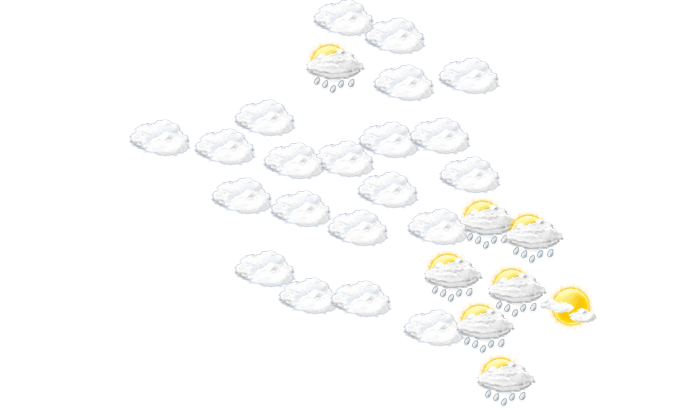 In Porto Velho bleibt am Morgen die Wolkendecke geschlossen bei Werten von 23°C. Darüber hinaus regnet es mittags und auch abends bei Temperaturen von 24 bis 25°C. In der Nacht gibt es nur selten Lücken in der Wolkendecke bei einer Temperatur von 23°C.