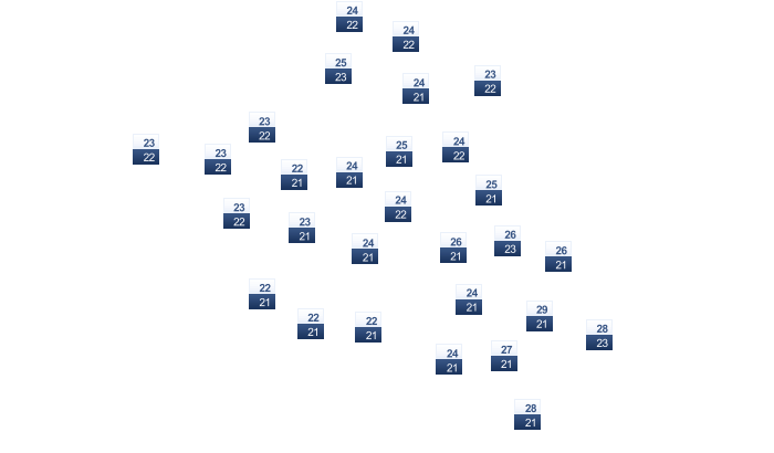 | 23 | 24 | 24 | 23 | 22 | 22 | 21 | 21 | 22 | 22 | 23 | 23 |
