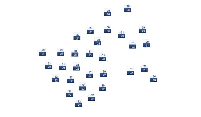 | 30 | 31 | 32 | 32 | 32 | 32 | 32 | 32 | 32 | 32 | 31 | 31 |