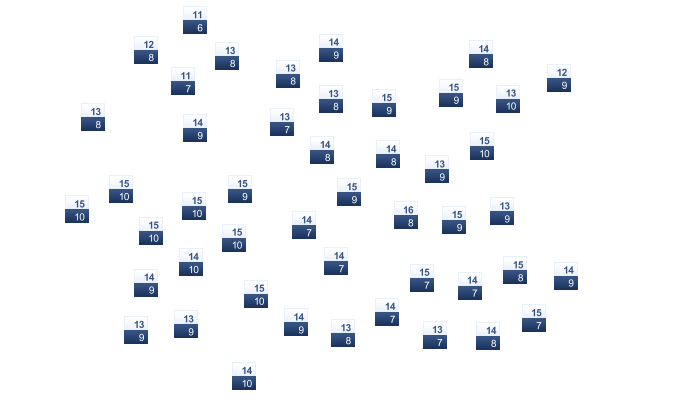 | 0 | 3 | 5 | 10 | 14 | 18 | 21 | 21 | 18 | 13 | 8 | 3 |