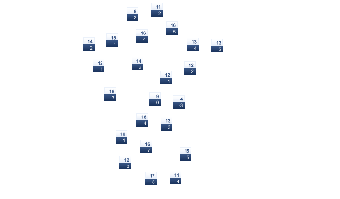 | 0 | 3 | 5 | 10 | 14 | 18 | 21 | 21 | 18 | 13 | 8 | 3 |