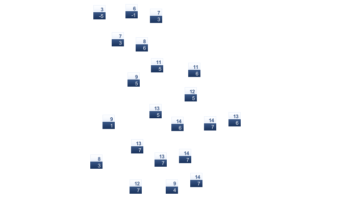 | 0 | 3 | 5 | 10 | 14 | 18 | 21 | 21 | 18 | 13 | 8 | 3 |