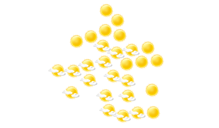 In Nouna scheint vormittags und auch am Nachmittag die Sonne bei blauem Himmel bei Temperaturen von 23 bis 36°C. Am Abend bilden sich in Nouna vereinzelt Wolken bei Temperaturen von 26 bis 30°C. Nachts gibt es einen wolkenlosen Himmel bei Tiefstwerten von 20°C.