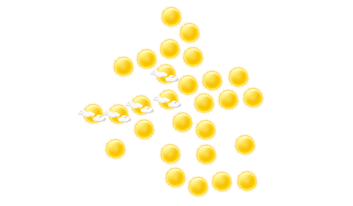In Nouna verdecken am Morgen einzelne Wolken die Sonne und die Temperatur liegt bei 23°C. Darüber hinaus scheint von mittags bis zum Abend hin die Sonne bei Werten von 30 bis zu 39°C. In der Nacht bilden sich vereinzelt Wolken bei einer Temperatur von 24°C.