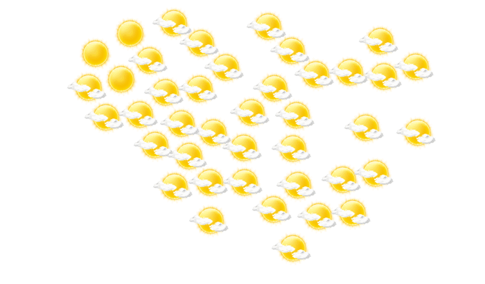 In Sindou scheint morgens die Sonne bei Temperaturen von 23°C. Gegen später wird die Sonne von einzelnen Wolken verdeckt bei Höchstwerten von 38°C. Abends gibt es in Sindou einen wolkenlosen Himmel bei Werten von 28 bis zu 31°C. Nachts ist es wolkenlos bei Werten von 23°C.