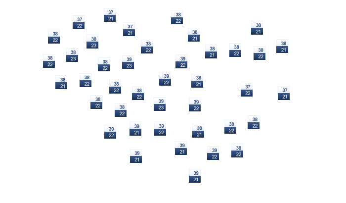 | 34 | 36 | 38 | 37 | 34 | 33 | 30 | 29 | 31 | 33 | 35 | 33 |