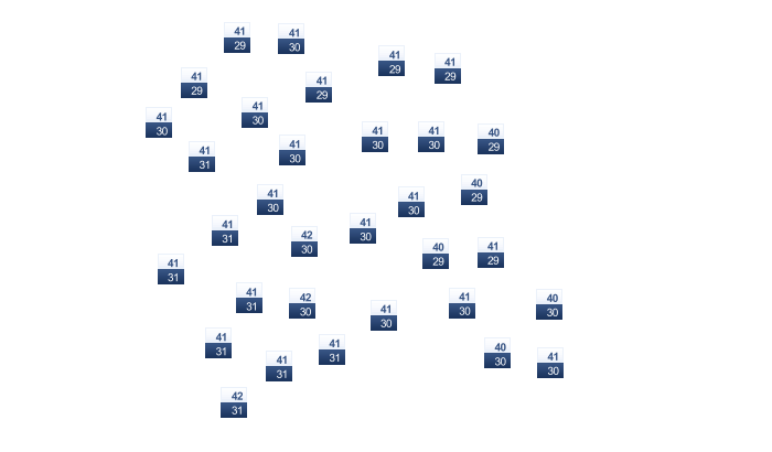 | 34 | 36 | 38 | 37 | 34 | 33 | 30 | 29 | 31 | 33 | 35 | 33 |