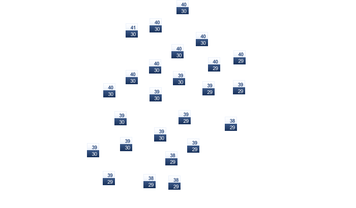 | 34 | 36 | 38 | 37 | 34 | 33 | 30 | 29 | 31 | 33 | 35 | 33 |