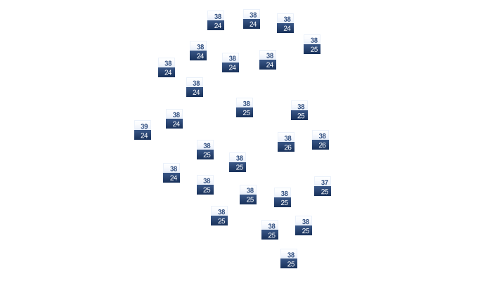 | 34 | 36 | 38 | 37 | 34 | 33 | 30 | 29 | 31 | 33 | 35 | 33 |