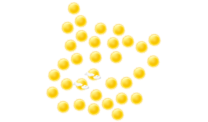 In Souroukoudinga gibt es am Tag ungestörten Sonnenschein bei Temperaturen von 20 bis 37°C. In der Nacht gibt es einen wolkenlosen Himmel bei einer Temperatur von 20°C.