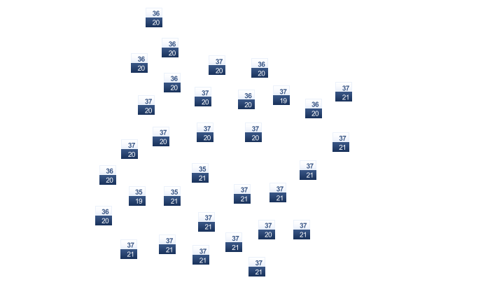 | 34 | 36 | 38 | 37 | 34 | 33 | 30 | 29 | 31 | 33 | 35 | 33 |
