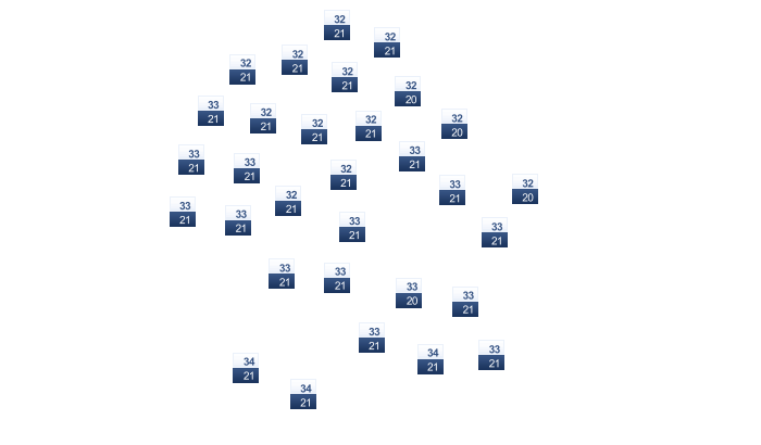 | 34 | 36 | 38 | 37 | 34 | 33 | 30 | 29 | 31 | 33 | 35 | 33 |