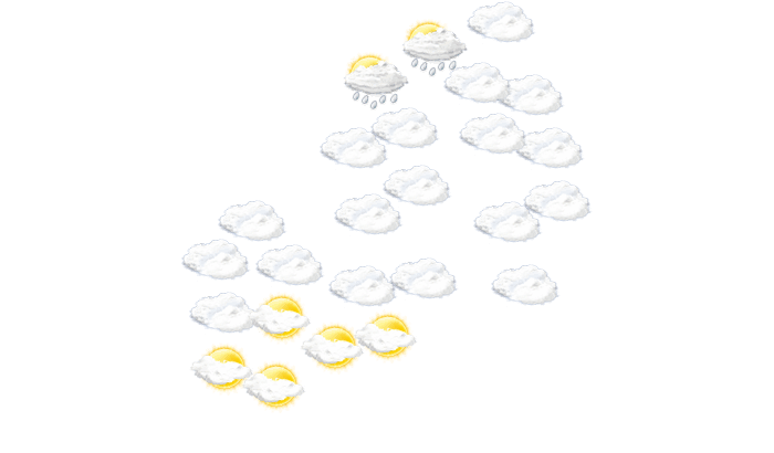 In Bamba ist es am Morgen bedeckt bei Temperaturen von 16°C. Im weiteren Tagesverlauf sollte der Schirm nicht vergessen werden, da es regnet bei Höchstwerten von 20°C. Am Abend überwiegt in Bamba dichte Bewölkung aber es bleibt trocken bei Werten von 16 bis zu 17°C. In der Nacht bleibt die Wolkendecke geschlossen bei Tiefstwerten von 15°C.