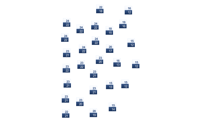 | 19 | 19 | 19 | 19 | 19 | 18 | 17 | 18 | 19 | 20 | 19 | 19 |