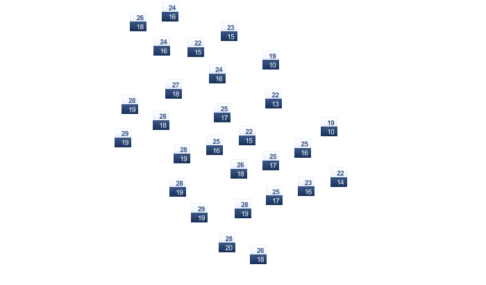 | 19 | 19 | 19 | 19 | 19 | 18 | 17 | 18 | 19 | 20 | 19 | 19 |