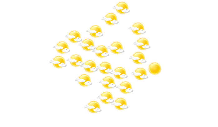 In Rusyanane ziehen morgens Wolkenfelder durch bei Temperaturen von 14°C. Darüber hinaus ist es vom Nachmittag bis abends wolkenlos bei Werten von 16 bis zu 26°C. In der Nacht ist es locker bewölkt bei Tiefsttemperaturen von 14°C.