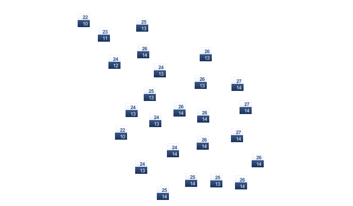 | 29 | 29 | 28 | 28 | 29 | 29 | 29 | 30 | 31 | 30 | 28 | 28 |