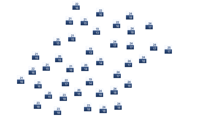 | 19 | 19 | 19 | 19 | 19 | 18 | 17 | 18 | 19 | 20 | 19 | 19 |