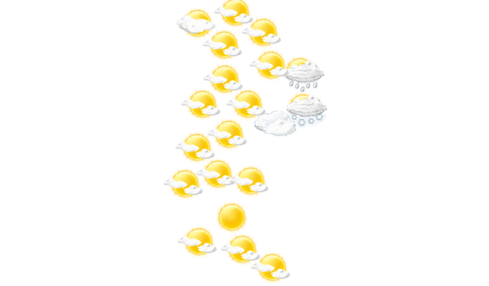 In La Serena gibt es tagsüber eine Mischung aus Sonne und Wolken bei Temperaturen von 17 bis 22°C. Nachts bleibt die Wolkendecke geschlossen bei einer Temperatur von 17°C.