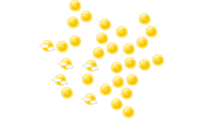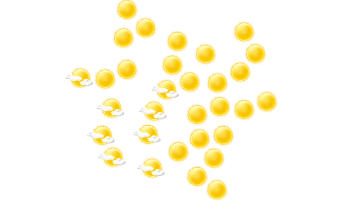 In Angol bilden sich morgens vereinzelt Wolken und die Temperatur liegt bei 12°C. Im weiteren Verlauf des Tages ist es mittags und auch abends wolkenlos bei Werten von 17 bis zu 33°C. In der Nacht bilden sich vereinzelt Wolken bei Werten von 12°C.