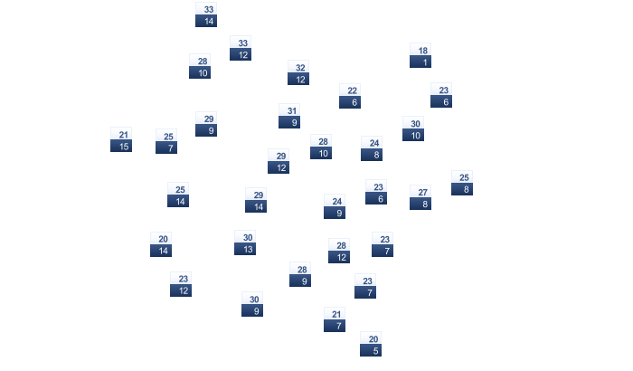 | 18 | 18 | 17 | 14 | 13 | 12 | 12 | 12 | 13 | 14 | 15 | 17 |