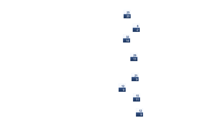 | 18 | 18 | 17 | 14 | 13 | 12 | 12 | 12 | 13 | 14 | 15 | 17 |