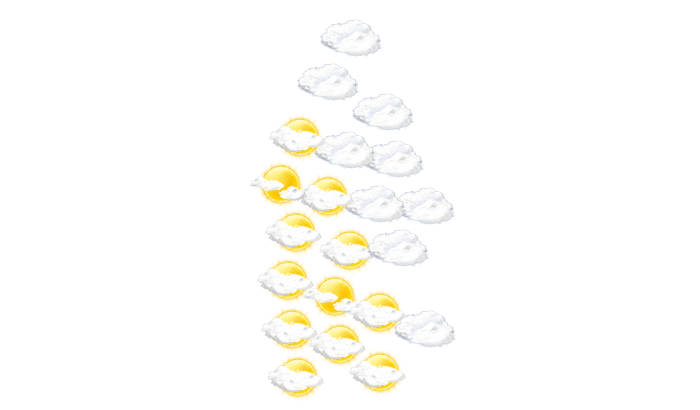 In Alto Hospicio kommt es tagsüber zu einem Mix aus Sonne und Wolken bei Temperaturen von 18 bis 23°C. In der Nacht ist es bewölkt, die Sterne sind nur vereinzelt zu sehen bei Werten von 19°C.