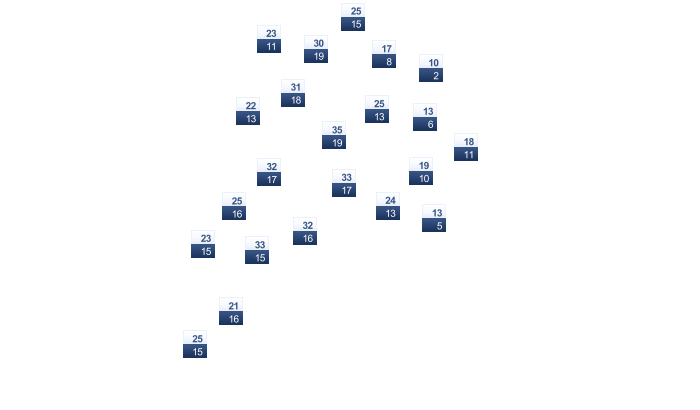 | 18 | 18 | 17 | 14 | 13 | 12 | 12 | 12 | 13 | 14 | 15 | 17 |