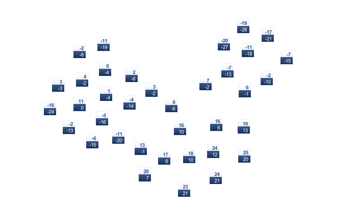 | -9 | -7 | -1 | 7 | 13 | 18 | 22 | 20 | 14 | 7 | 0 | -7 |