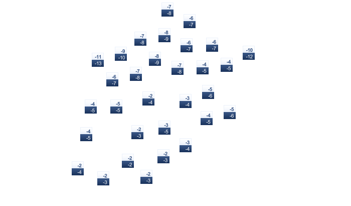| -9 | -7 | -1 | 7 | 13 | 18 | 22 | 20 | 14 | 7 | 0 | -7 |