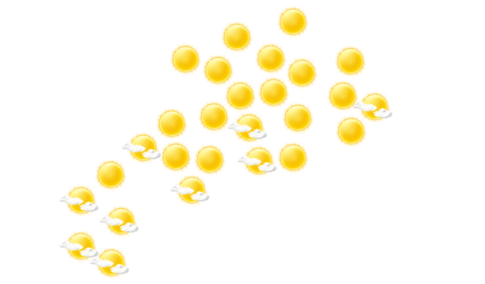 In Guangzhou wird am Tag die Sonne von einzelnen Wolken verdeckt bei Temperaturen von 15 bis 24°C. In der Nacht ist der Himmel bedeckt und die Temperatur fällt auf 14°C.